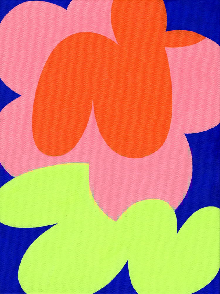 Blommor i närbild rosa och lime (Flower close-up pink and lime) Acrylic on canvas 2022