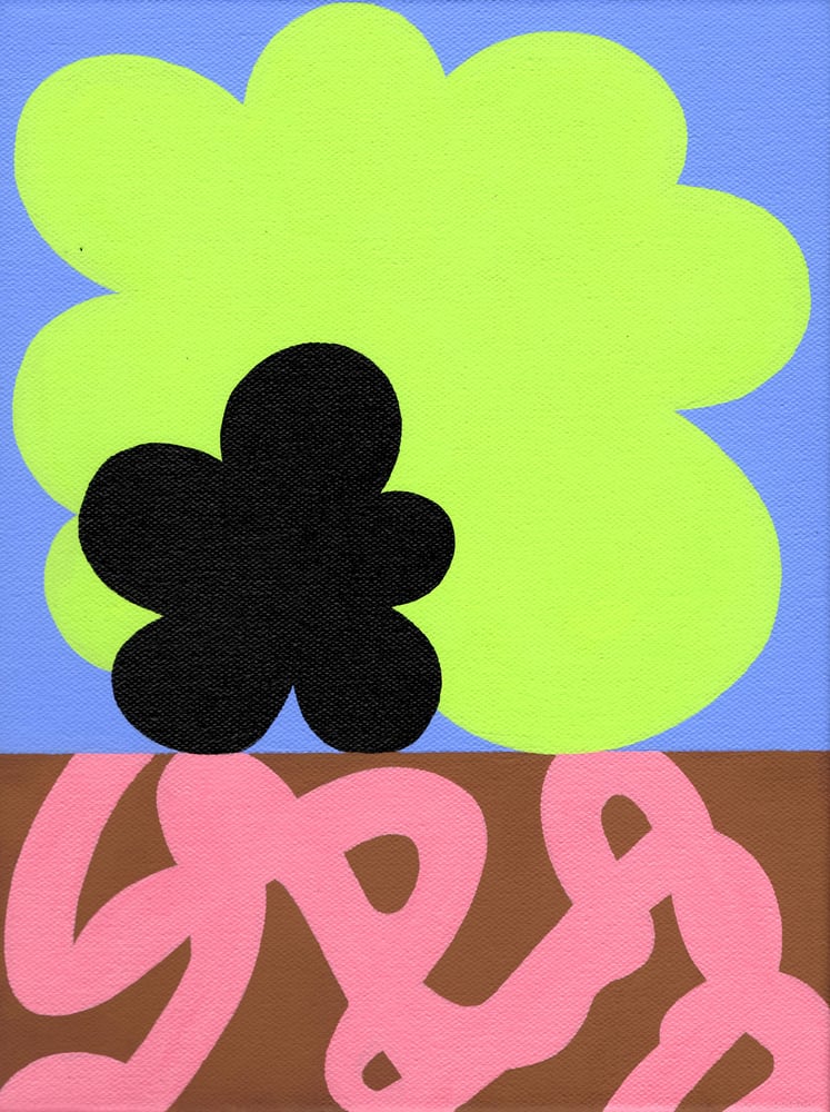 Blommor i närbild lime och svart (Flower close-up lime and black) Acrylic on canvas 2022